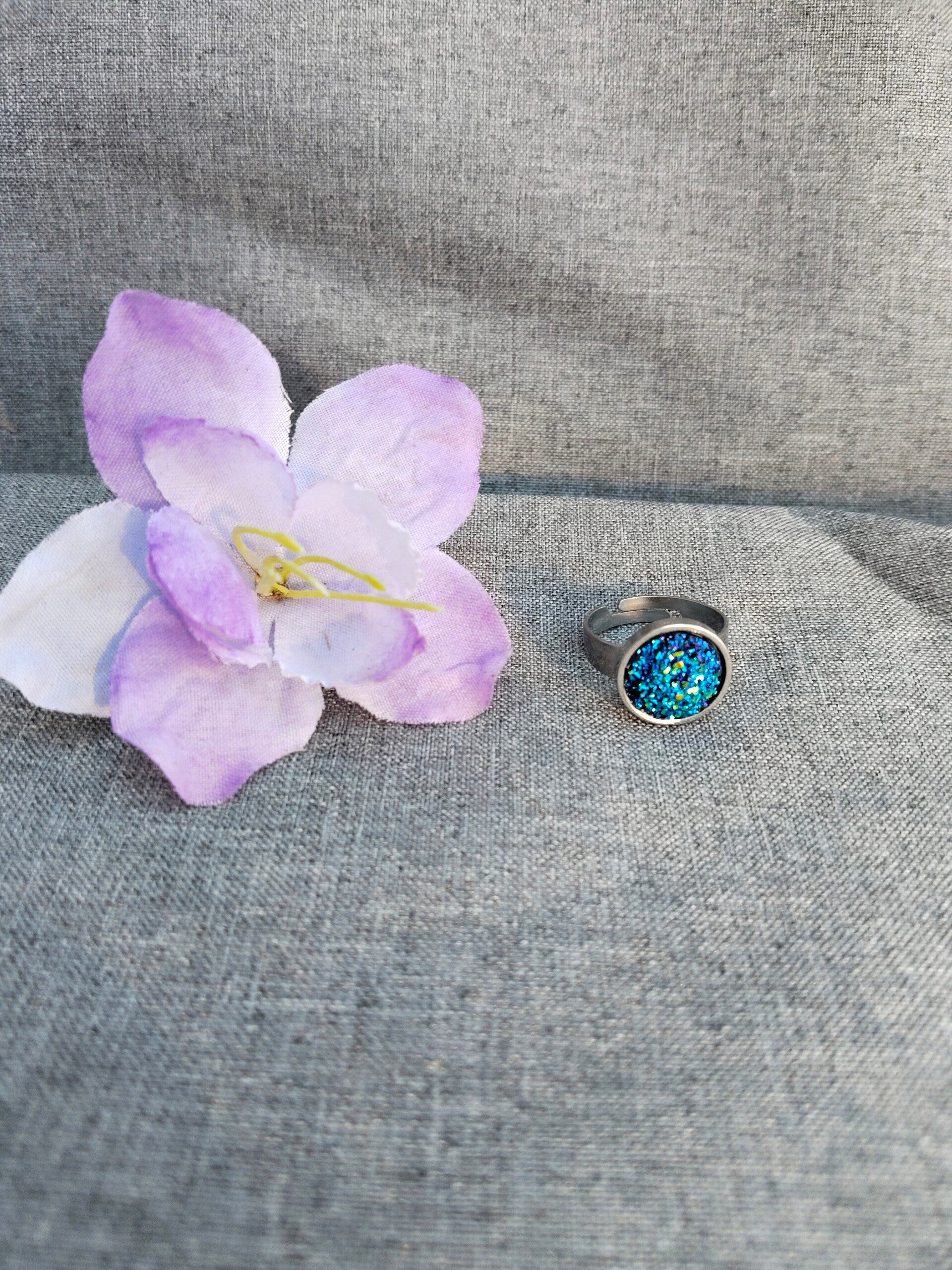 Schöne Edelstahlringe die verstellbar sind, Basis 18mm, Fassung 12mm in schönen Glitzerfarben.