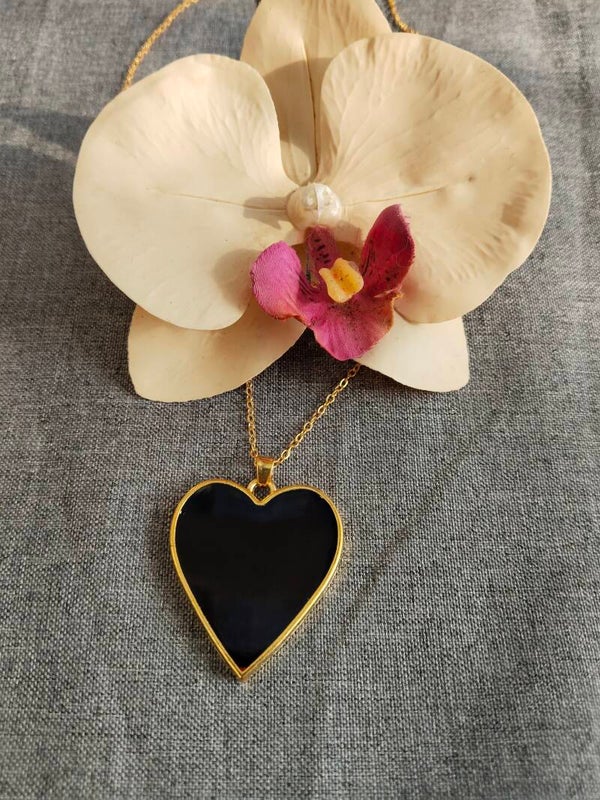 Edelstahlkette vergoldet mit vergoldeten Anhänger aus Harz gegossen, Länge der Kette ca. 46 cm, Größe des Anhängers 3,6cm.