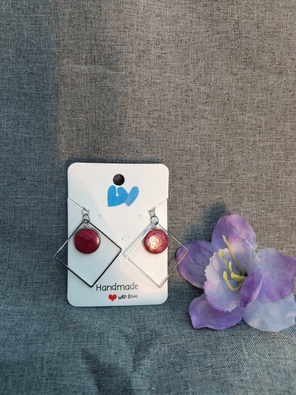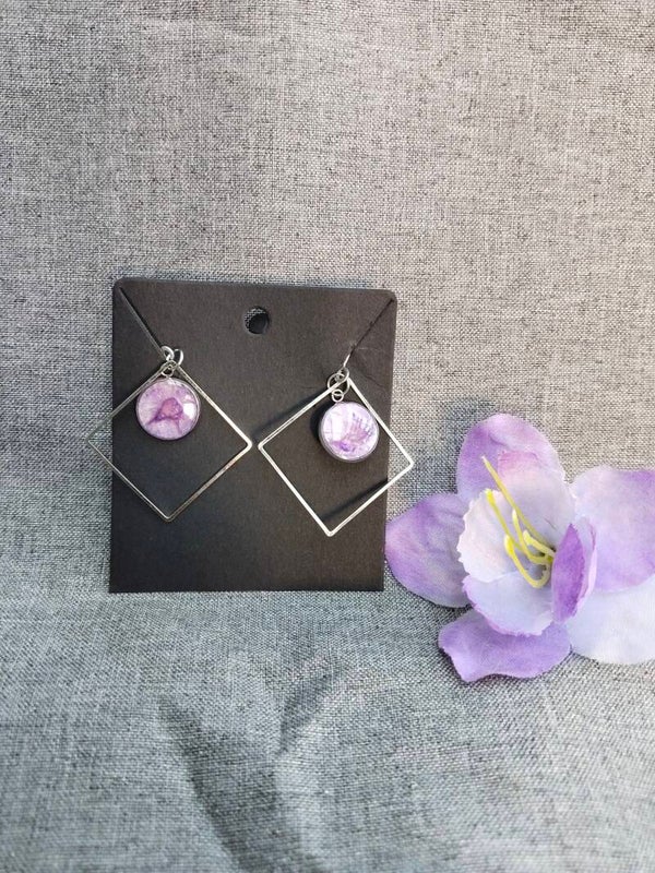 Tolle Ohringe aus Edelstahl mit Rechteck-Umrandung, die Fassungen sind 12mm groß und mit Harz und Glascabochons gefertigt. Alle Materialien bestehen aus Edelstahl.
