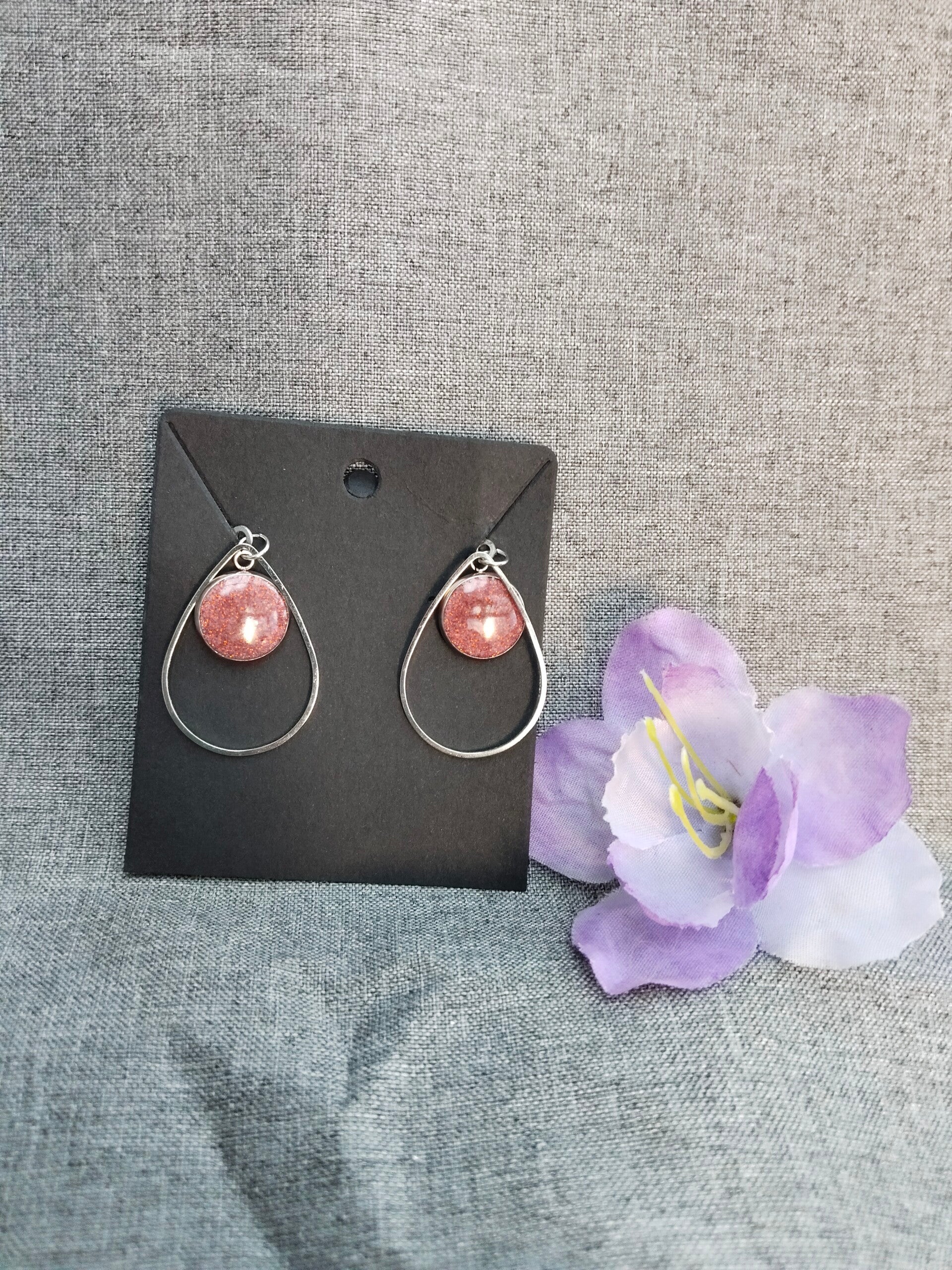 Tolle Ohringe aus Edelstahl mit Tropfen-Umrandung, die Fassungen sind 12mm groß und mit Harz und Glascabochons gefertigt. Alle Materialien bestehen aus Edelstahl.