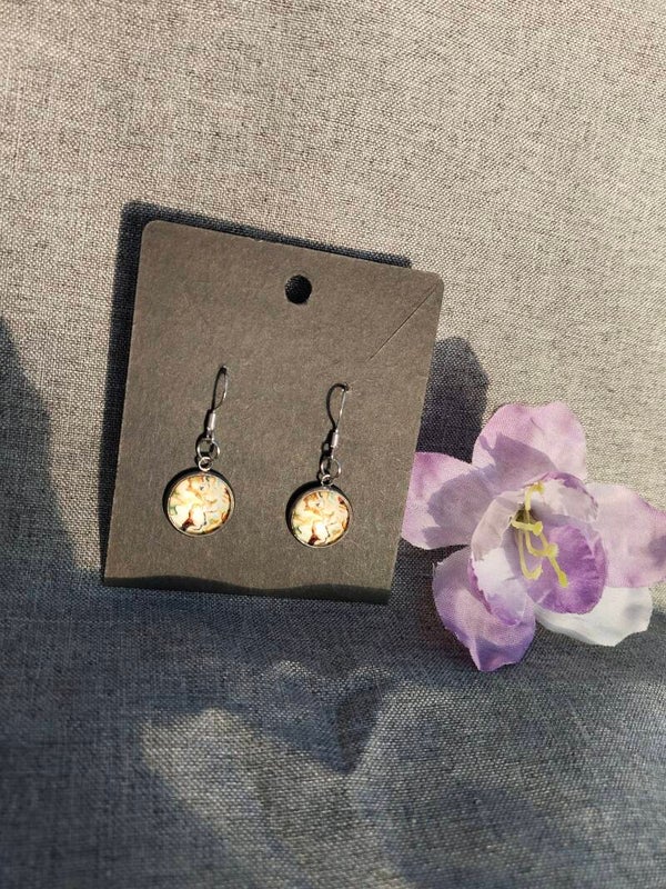 Schöne Ohrringe mit verschiedenen Motiven und Glascabochons, Größe des Rohlings 12mm, Ohrhaken und Rohling aus Edelstahl.