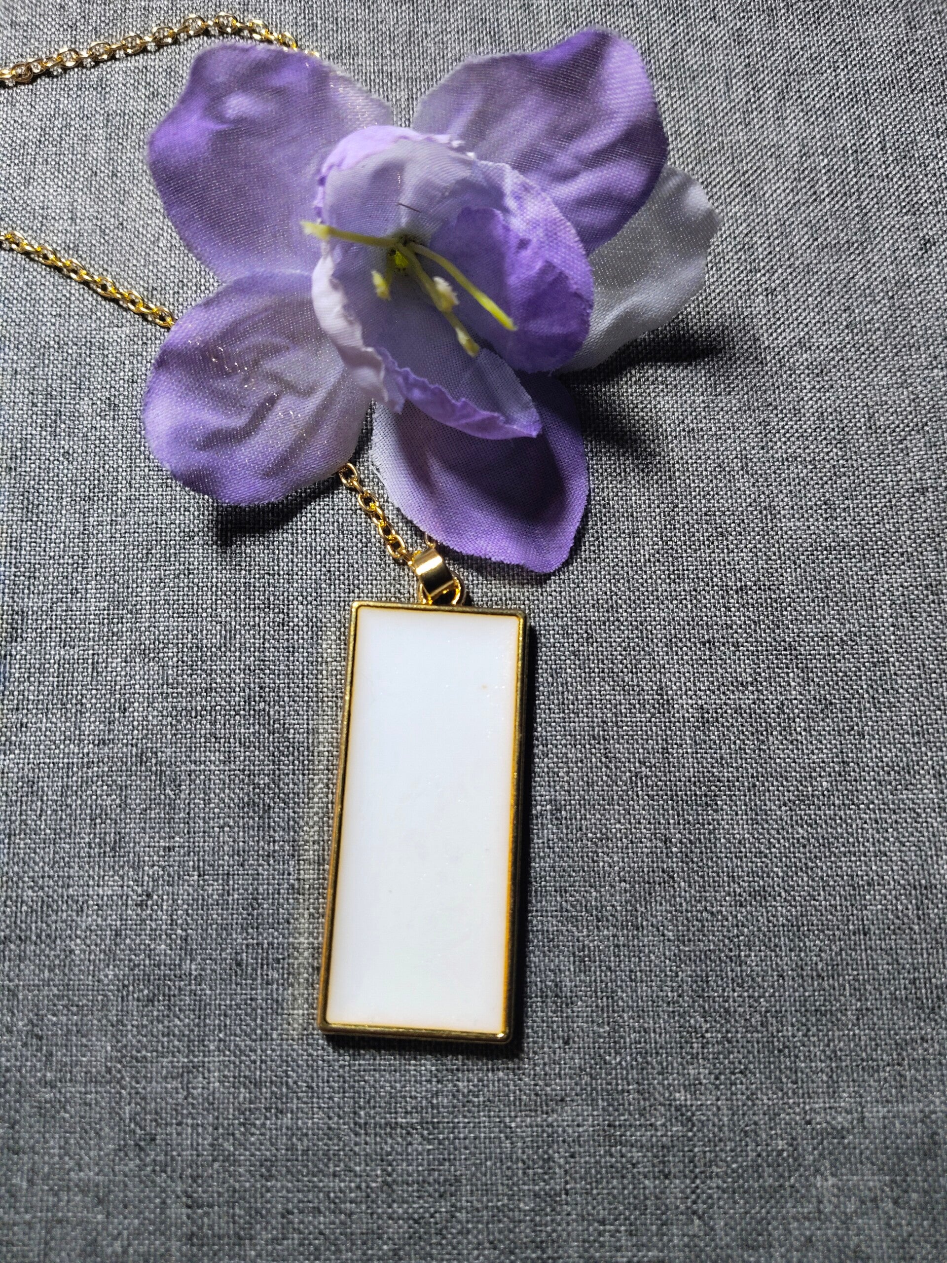 Schönes Schmuckset bestehend aus Kette + Ohrringe, alle Materialien sind aus vergoldeten Edelstahl, Kettenlänge ca. 45 cm, Ohrringe ca. 3,5cm, Farbe weiß mit Goldfassung, mit Harz gegossen.