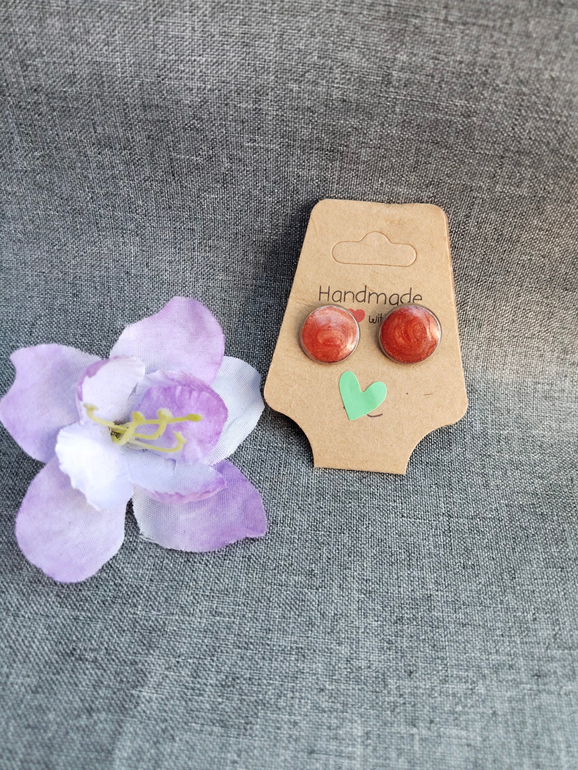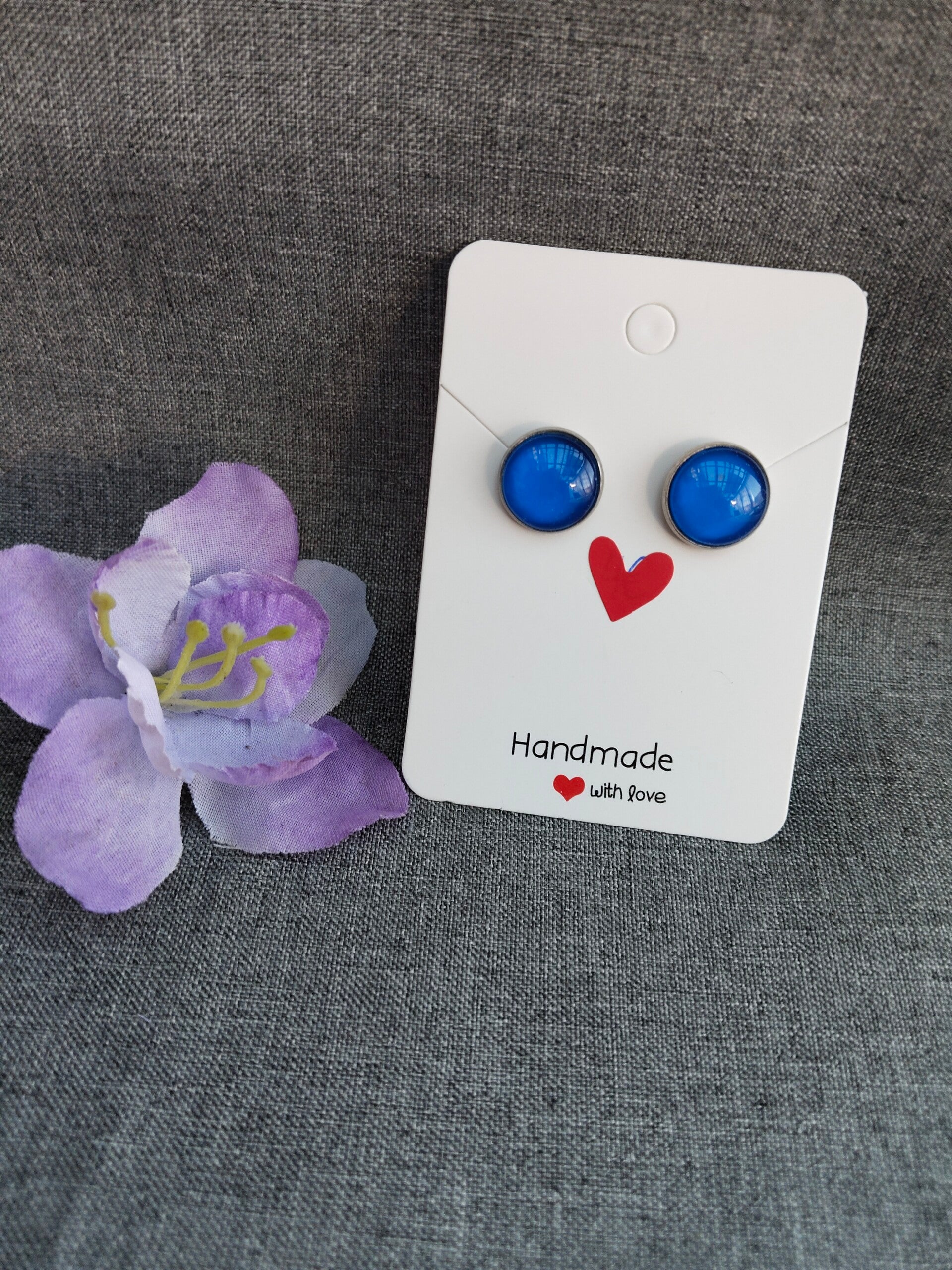 Ohrstecker bestehen aus Edelstahl in der Größe 12mm, gegossen mit Harz und Glascabochon-Kuppel.