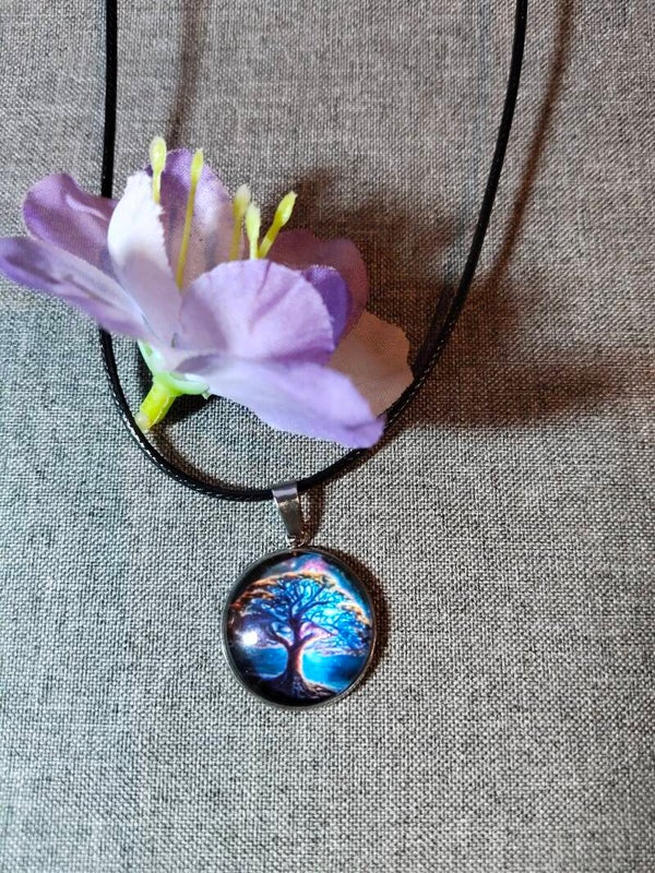 Tolle Ketten mit Lederband größenverstellbar von 45 - 50 cm, Anhängergröße 20mm mit Lebensbaum und Glaskuppel.