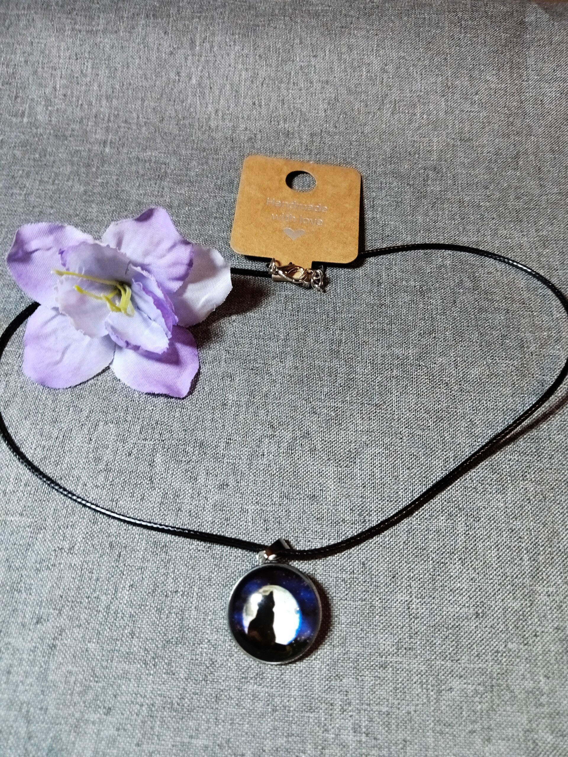 Tolle Ketten mit Lederband größenverstellbar von 45 - 50 cm, Anhängergröße 20mm mit Katzenmotiven und Glaskuppel.