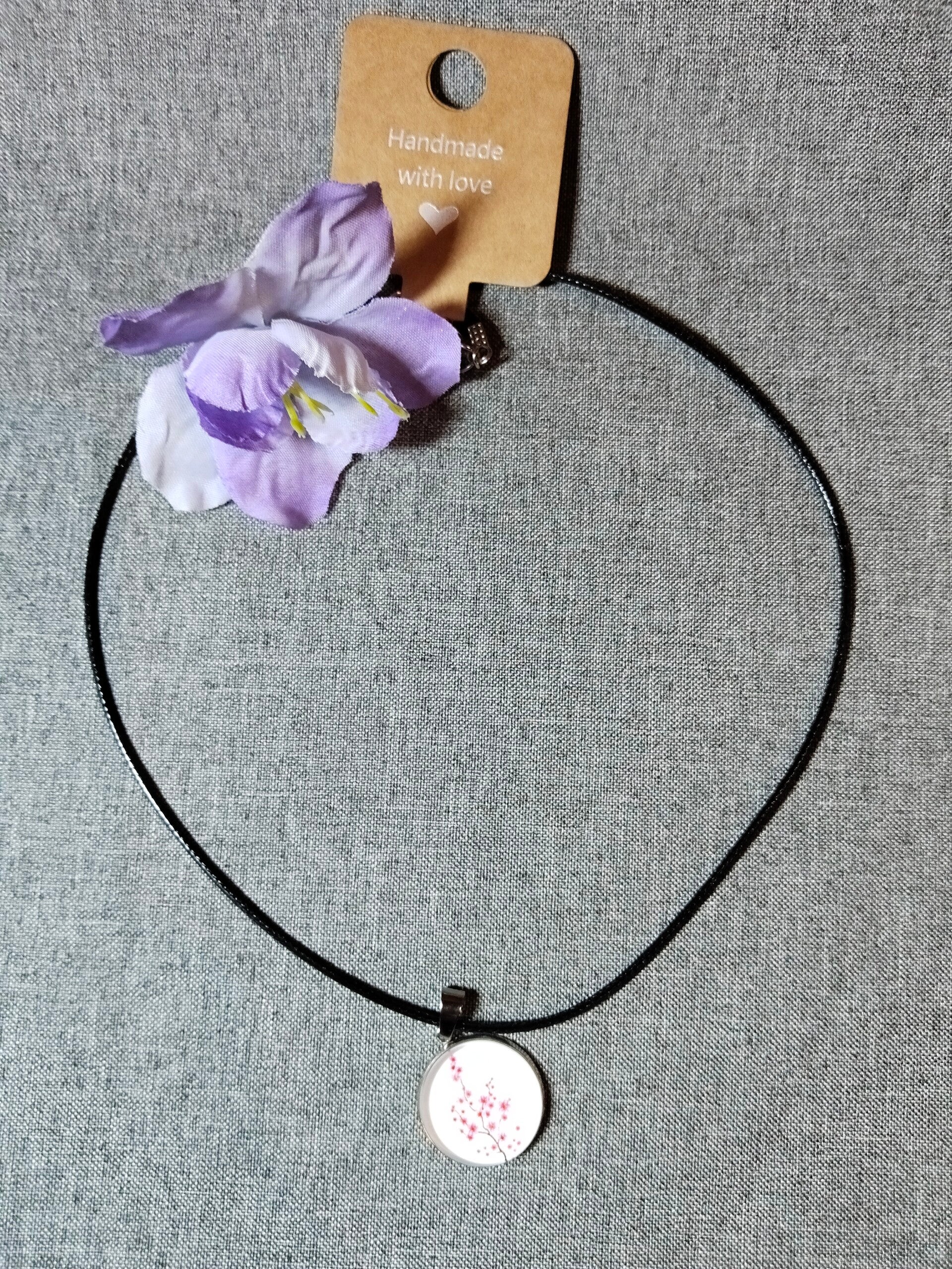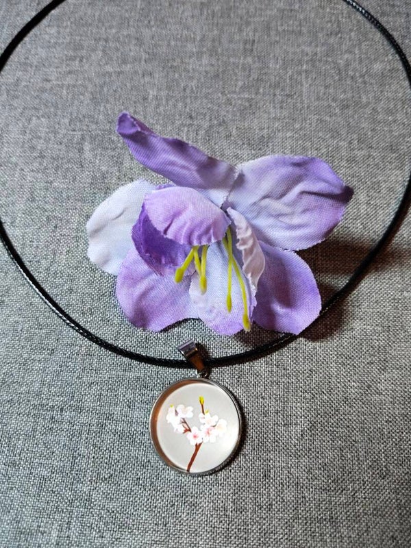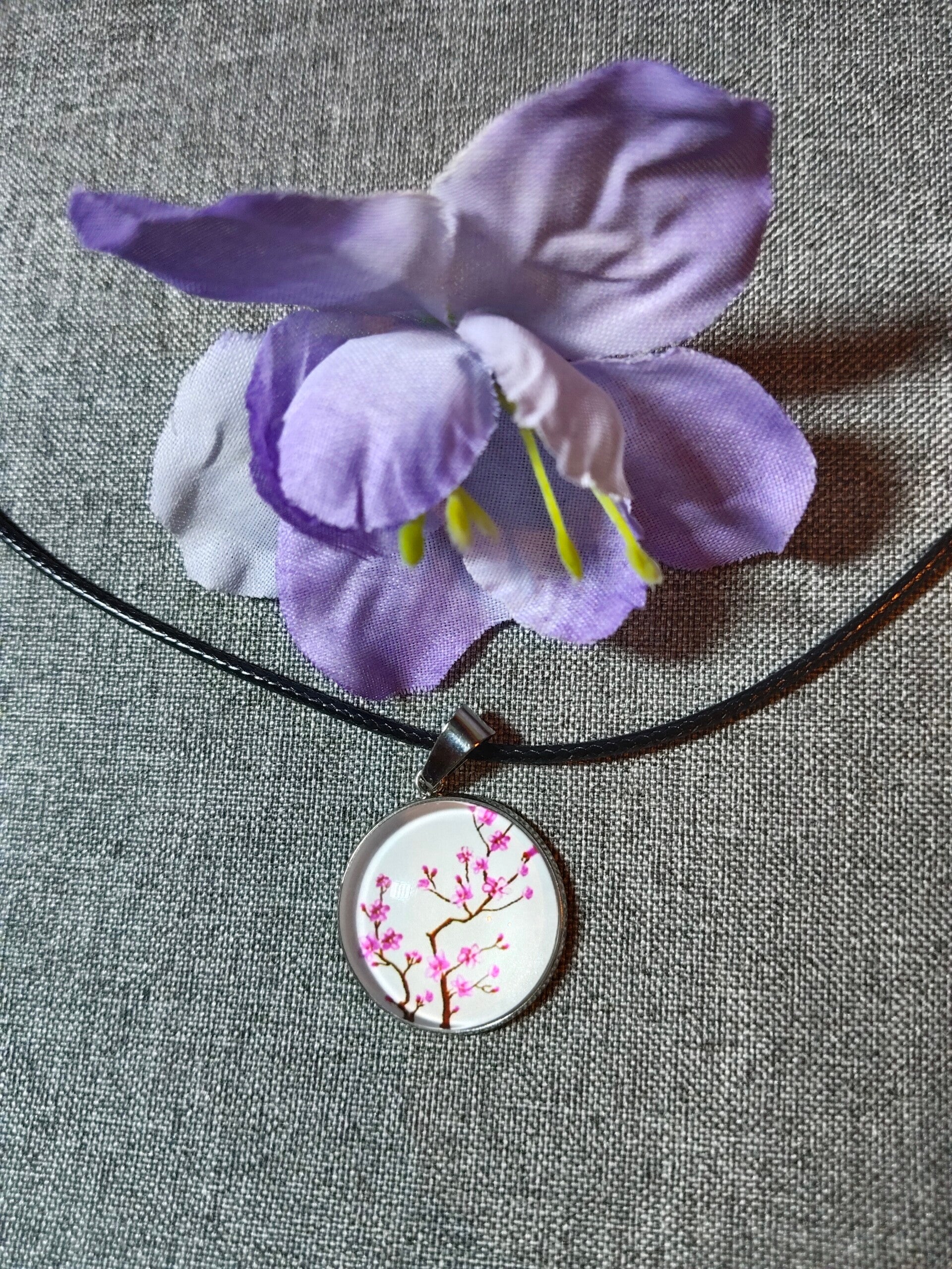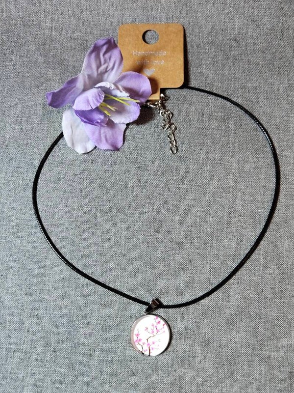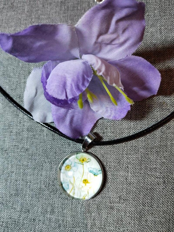 Tolle Ketten mit Lederband größenverstellbar von 45 - 50 cm, Anhängergröße 20mm mit Blumenmotiven und Glaskuppel.