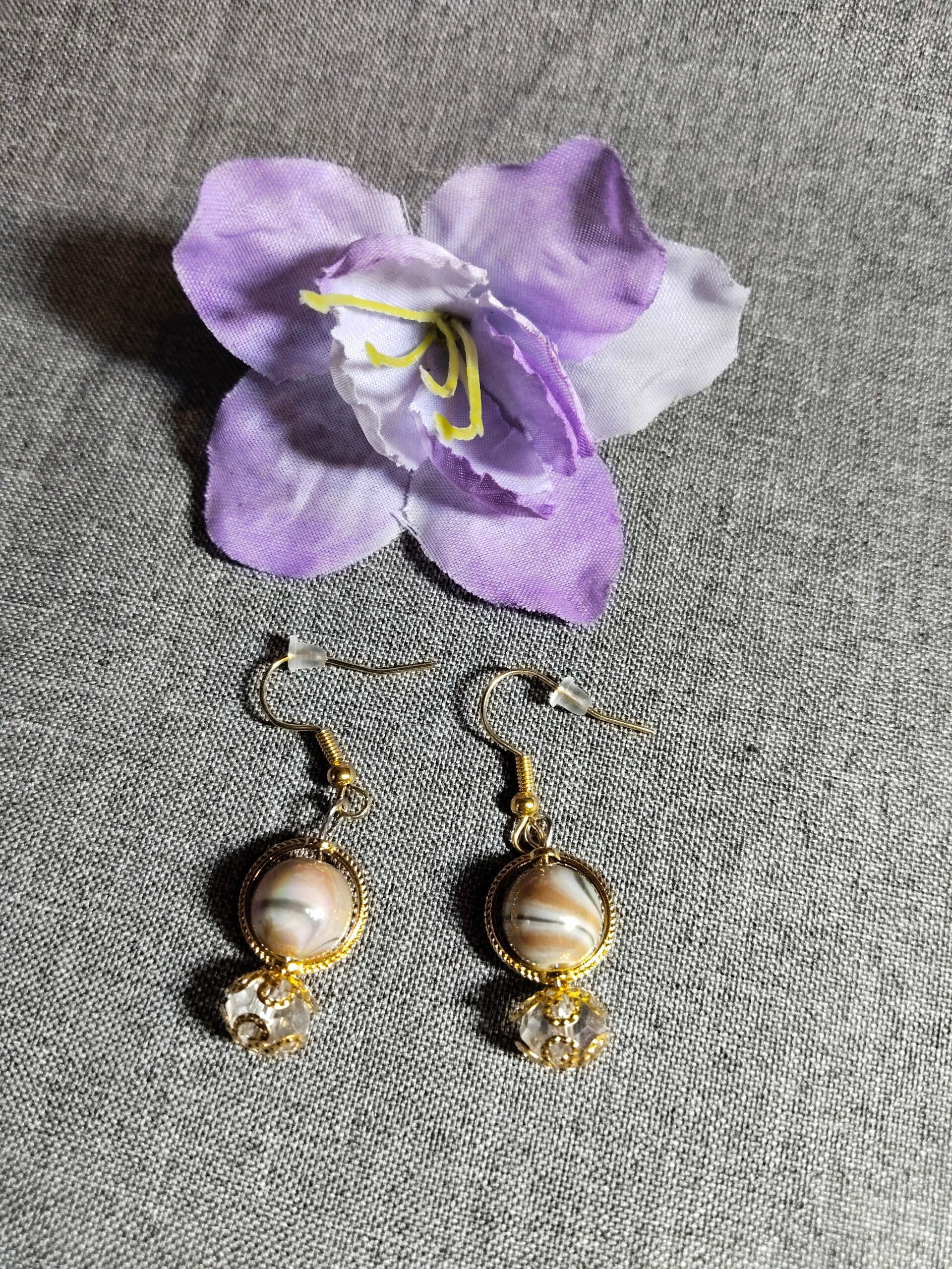 Schöne Perlenohrringe aus Edelstahl vergoldet, Haken aus Edelstahl vergoldet.