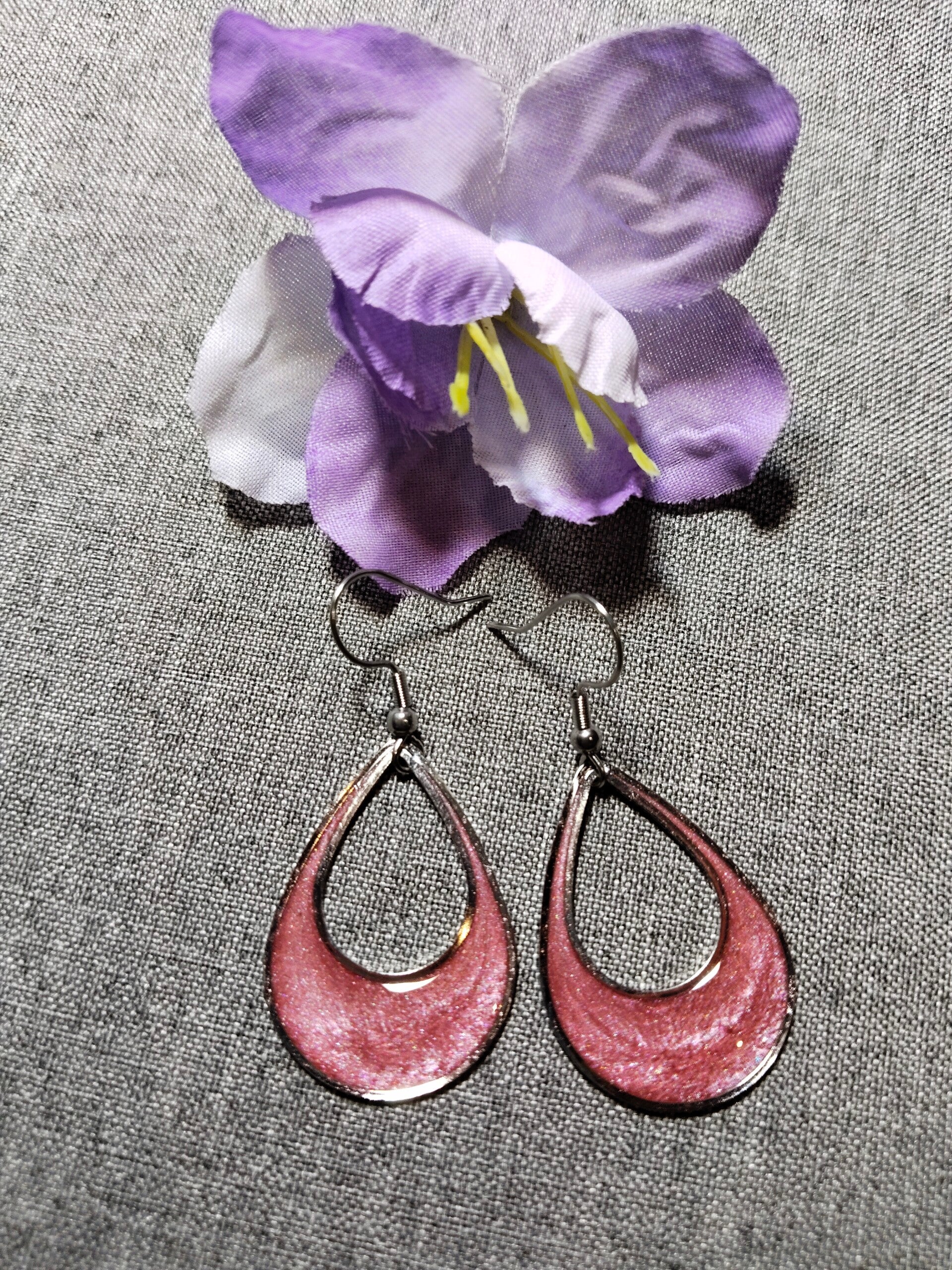 Schöne Ohrringe in Tropfenform, die mit Kunstharz gegossen wurden, Länge 3,5cm, alle Materialien aus Edelstahl.