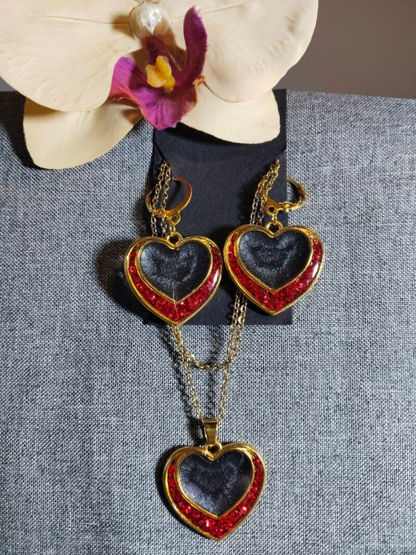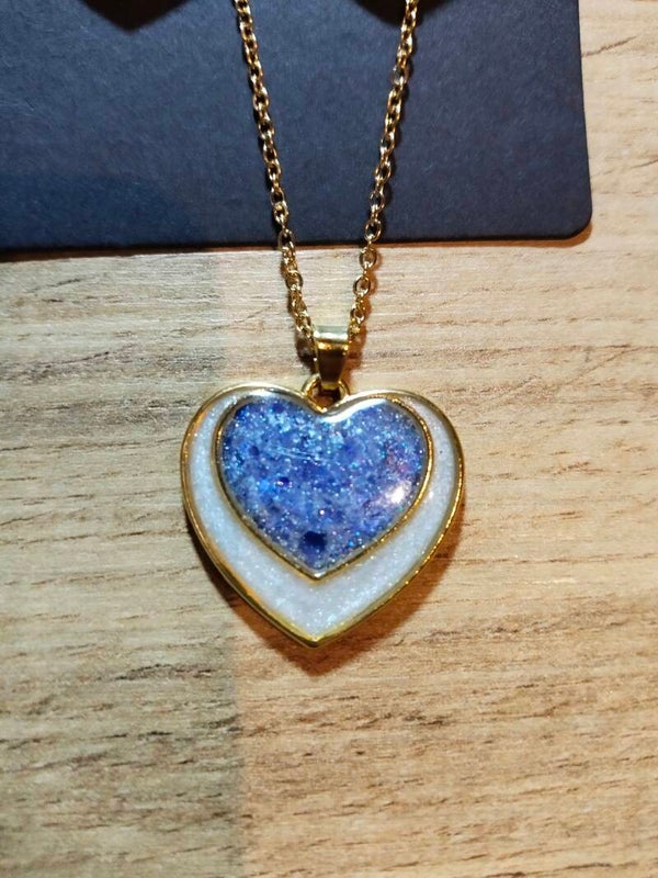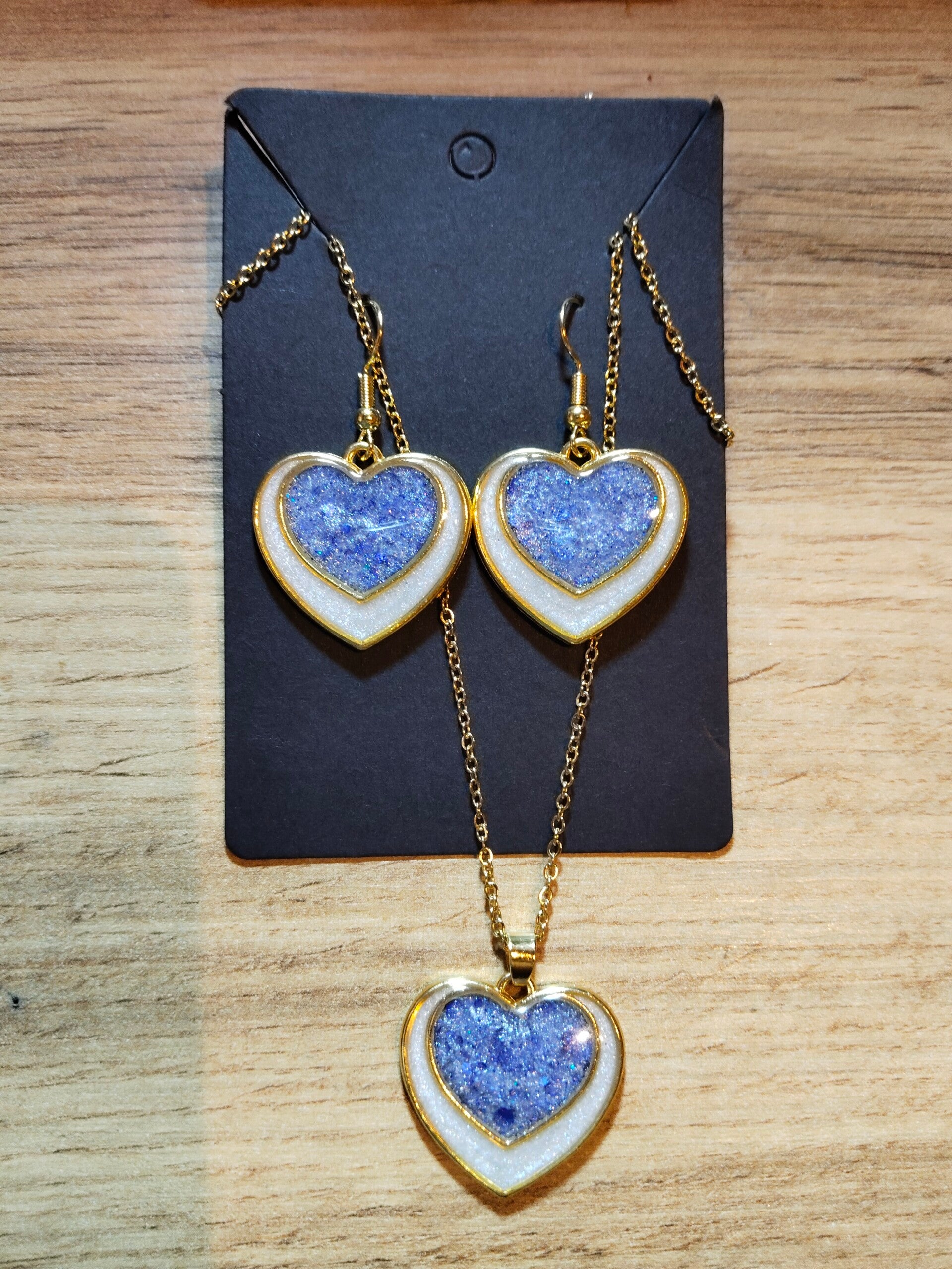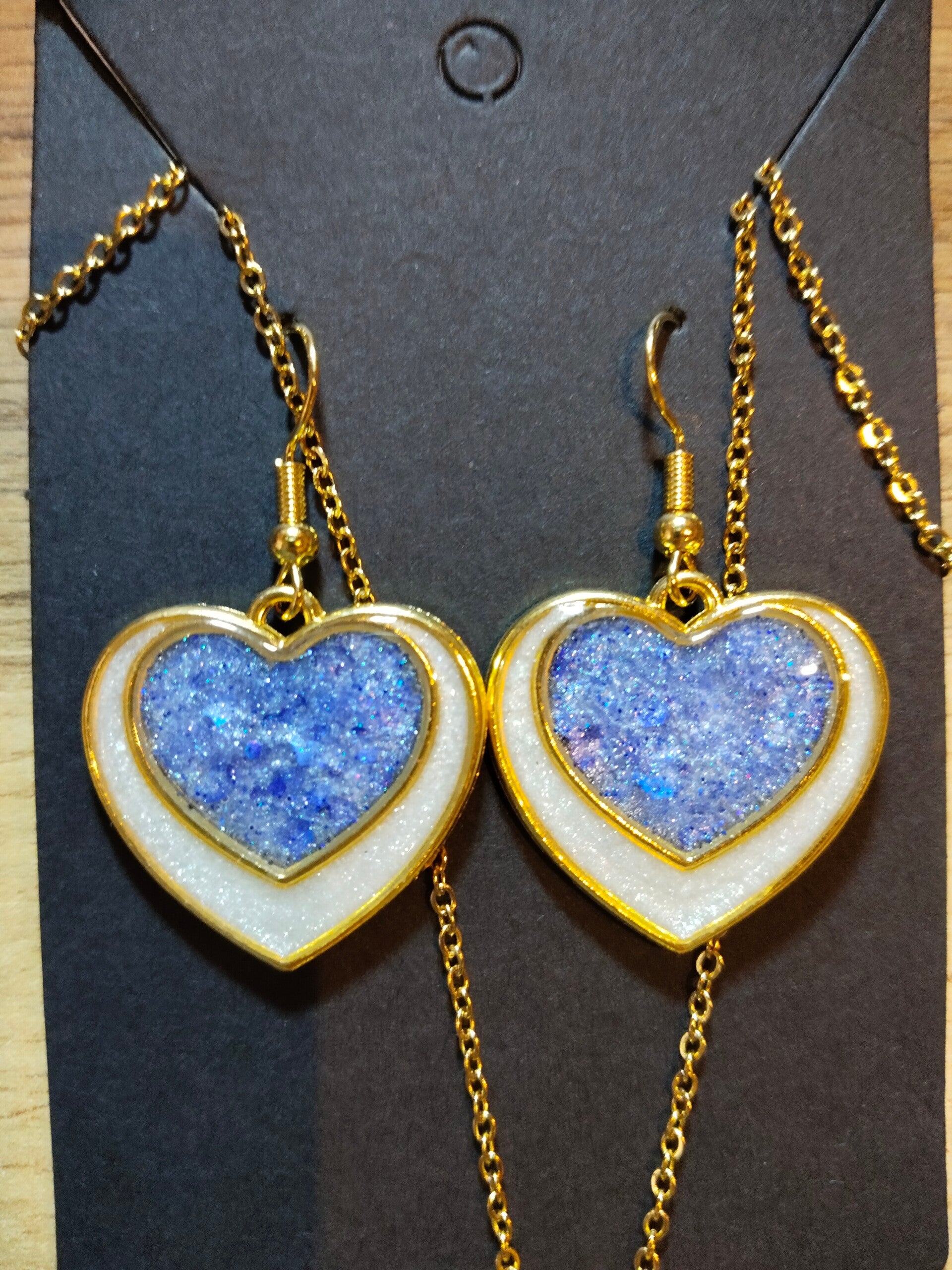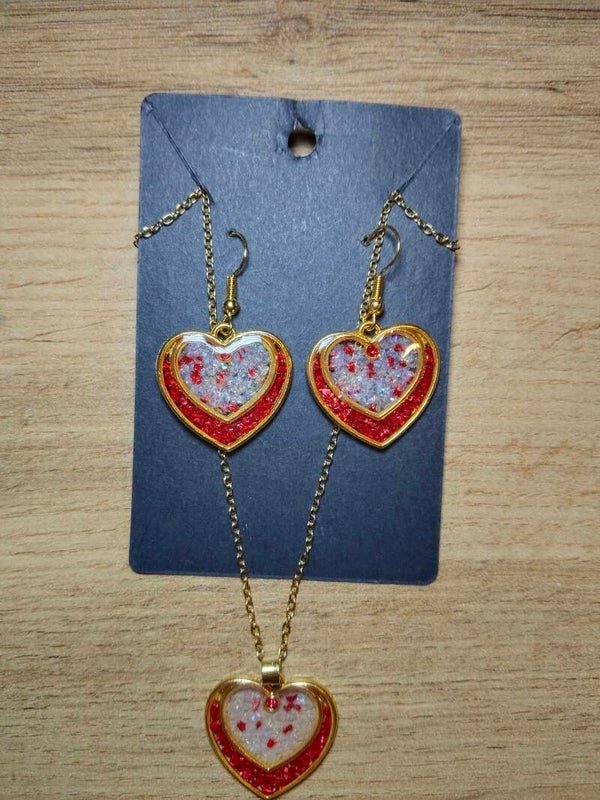 Wunderschöne Sets bestehend aus Ohrringe und Halskette mit Anhänger in Herzform, vergoldetes Edelstahl, wurden mit Harz gegossen, Kette ca. 50cm, Haken aus vergoldeten Edelstahl.
